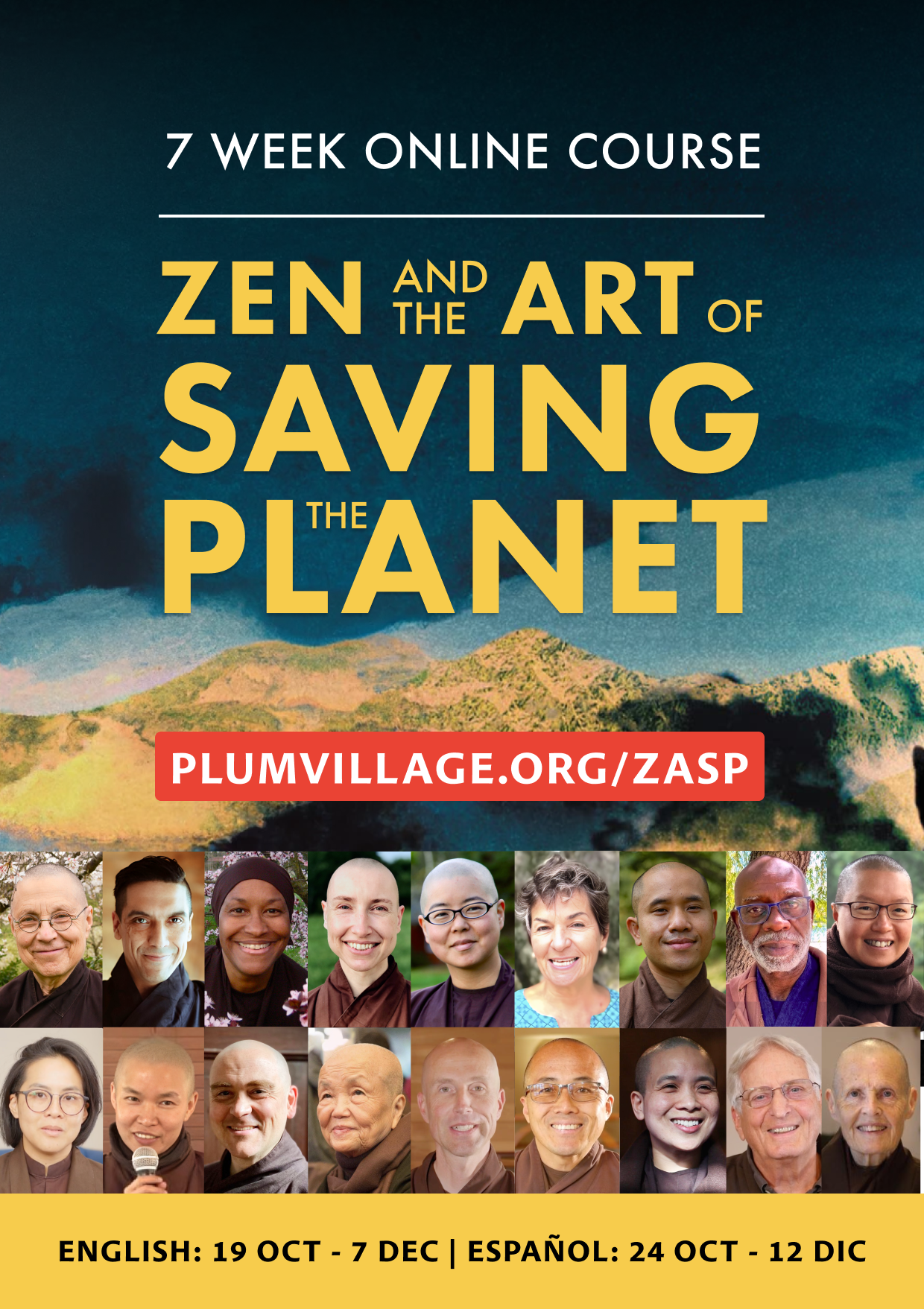 In 2025 there will be just one cohort of ZASP. Plum Village has just opened registrations for this cohort, and we’d love your help spreading the word to friends and colleagues about this wonderful opportunity to bring a spiritual dimension to their concern for the planet. I have taken this course twice and both times it was deeply transformational. I enjoyed being able to access the content on my own schedule and also participate in the global Dharma sharing and other community events. If you are feeling troubled by climate disruption, and many other issues we face, please give yourself the gift of this course.