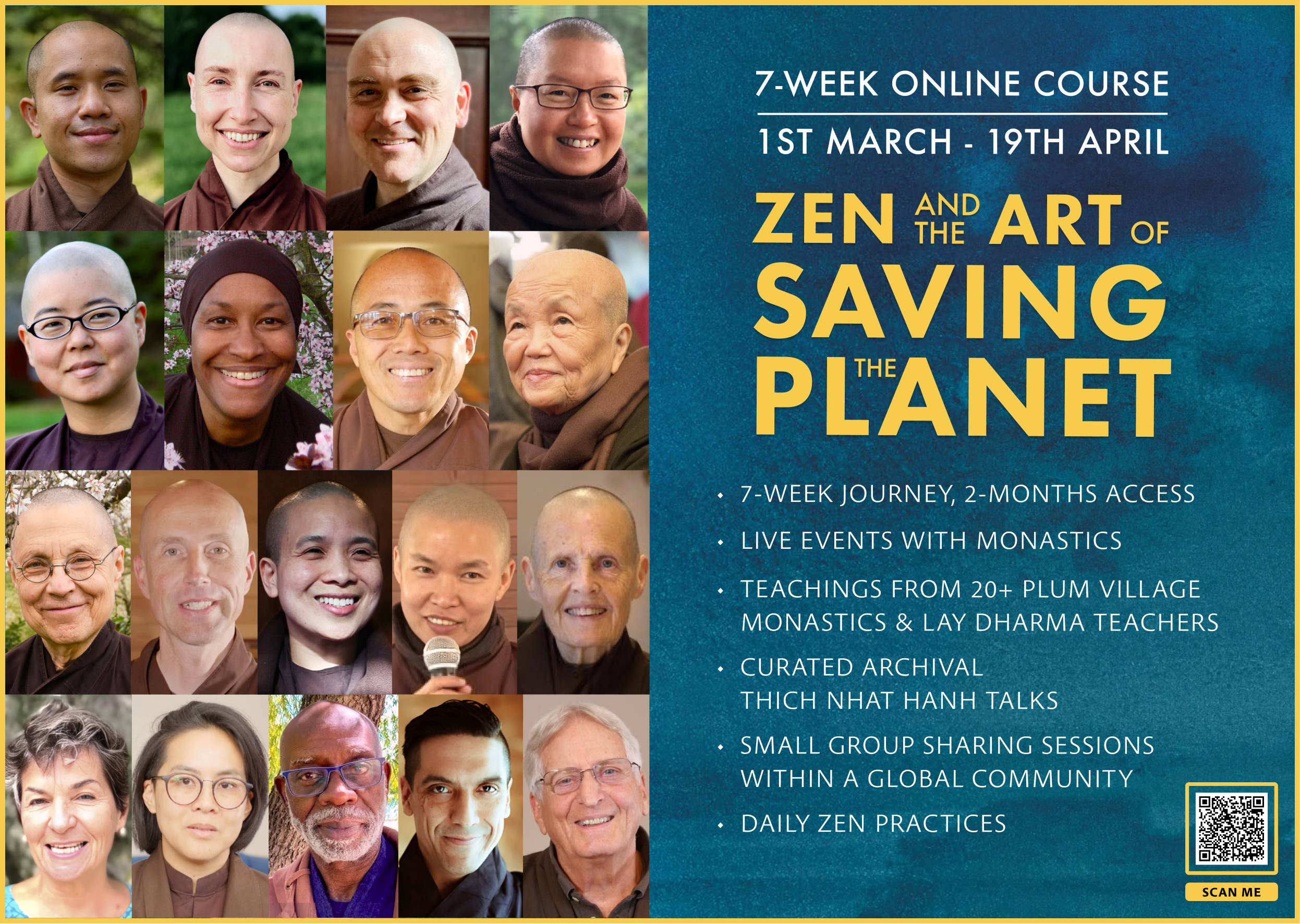 Zen and the Art of Saving the Planet (ZASP) is a 7-week online course inspired by the profound teachings of Zen Master Thich Nhat Hanh, designed to help us face challenging emotions and create a sense of freedom and possibility.